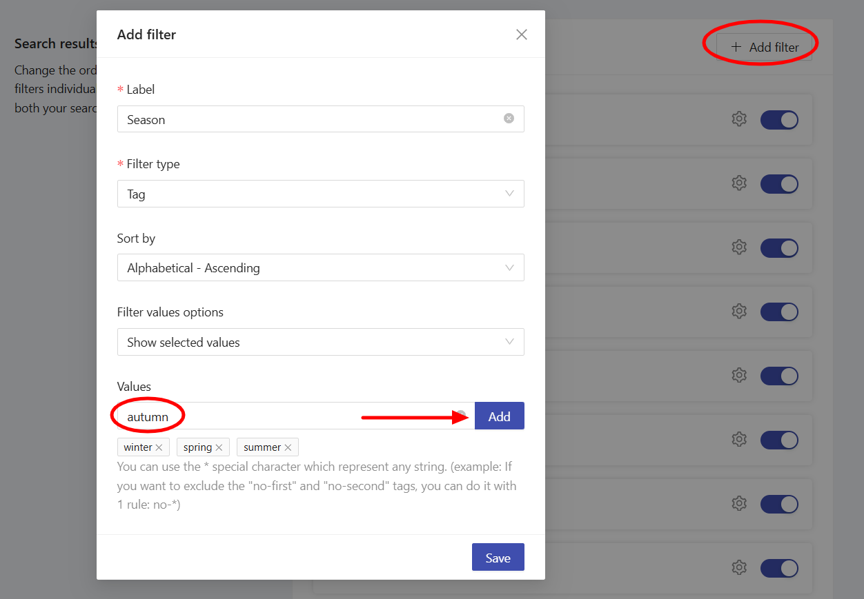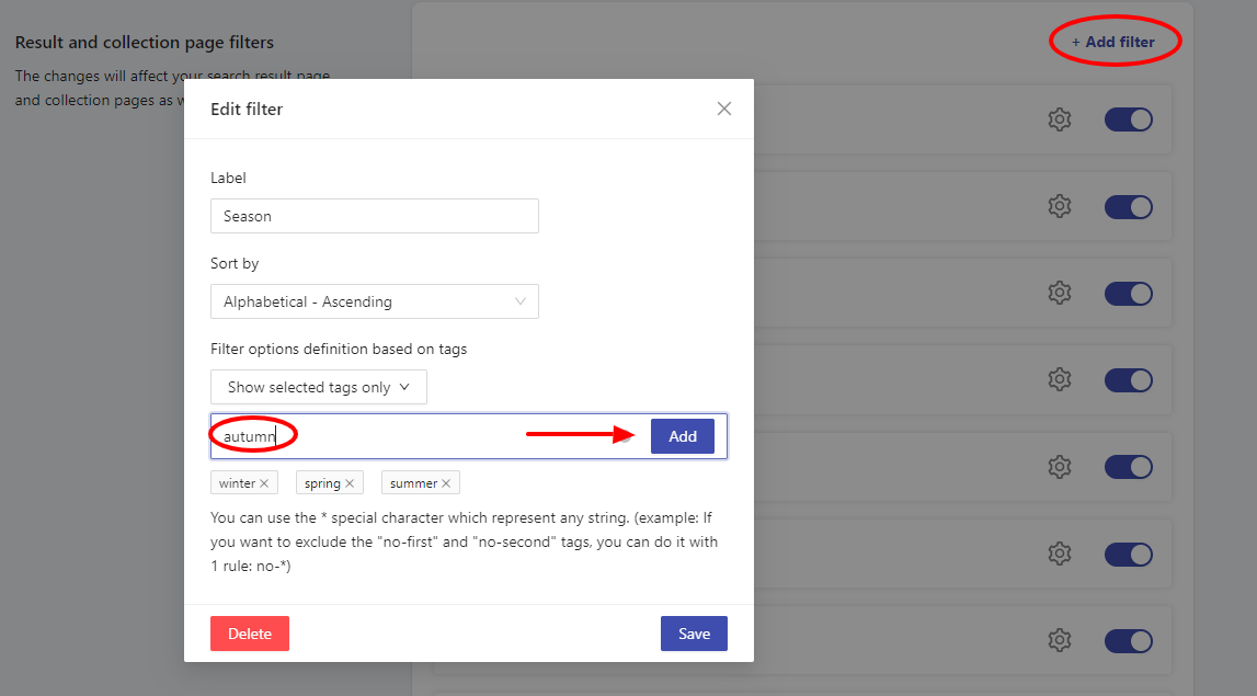 - In case you have your collection filters enabled, your filters on the search results page would look the same (i.e. if your tag filter is enabled, it will be enabled for both your result page and collection page as well)